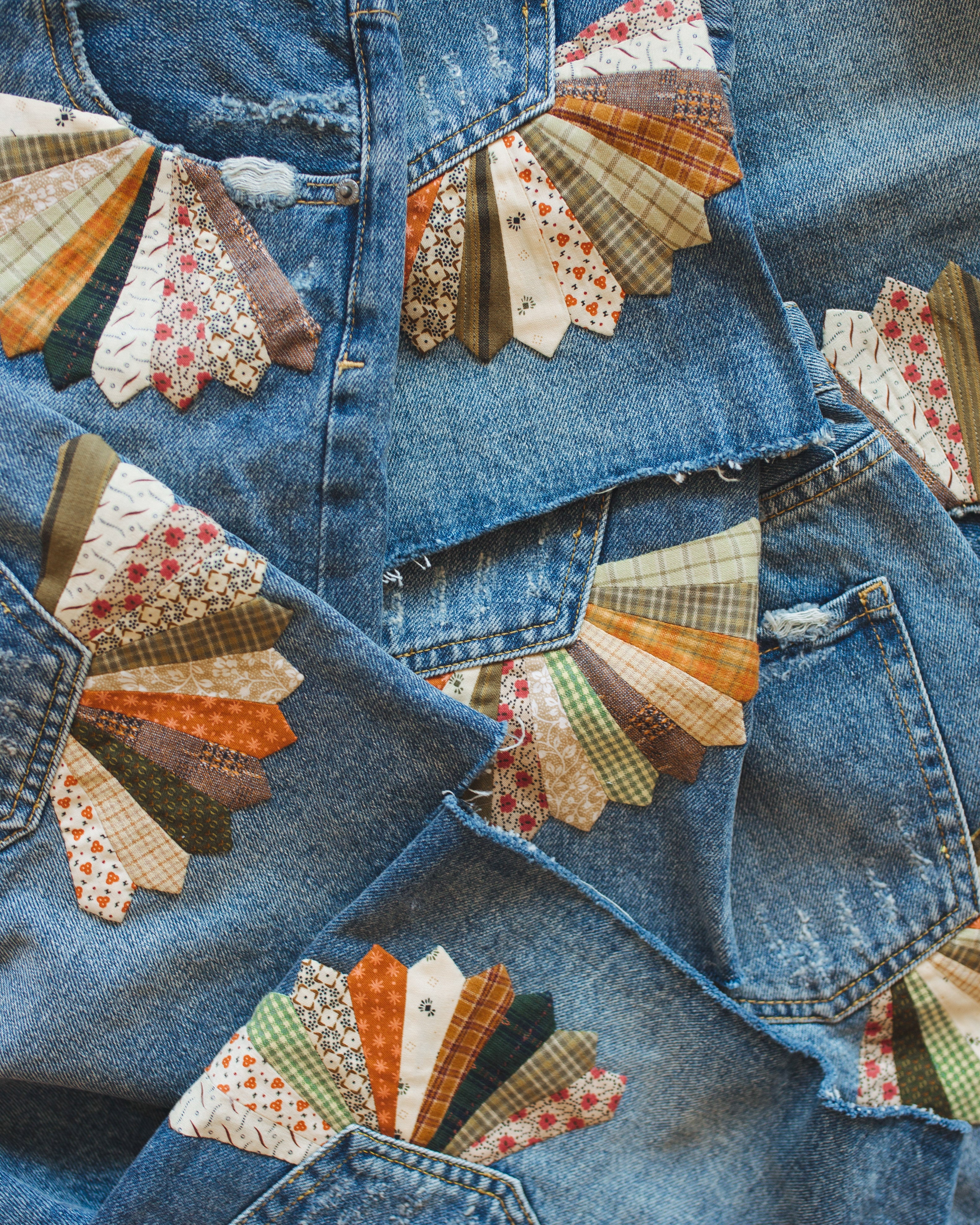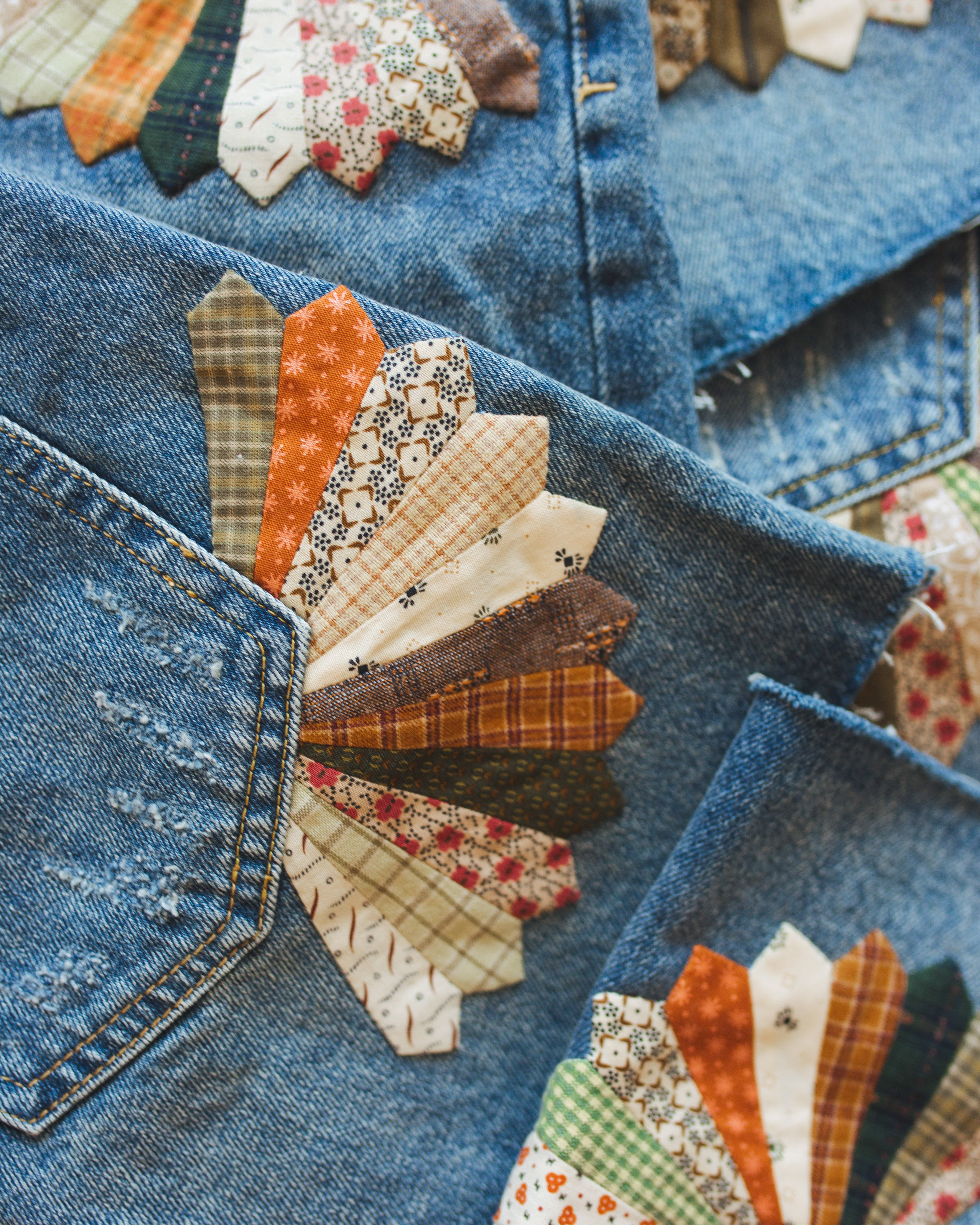• Patches Made From Scrap Fabric and Thrifted Apparel