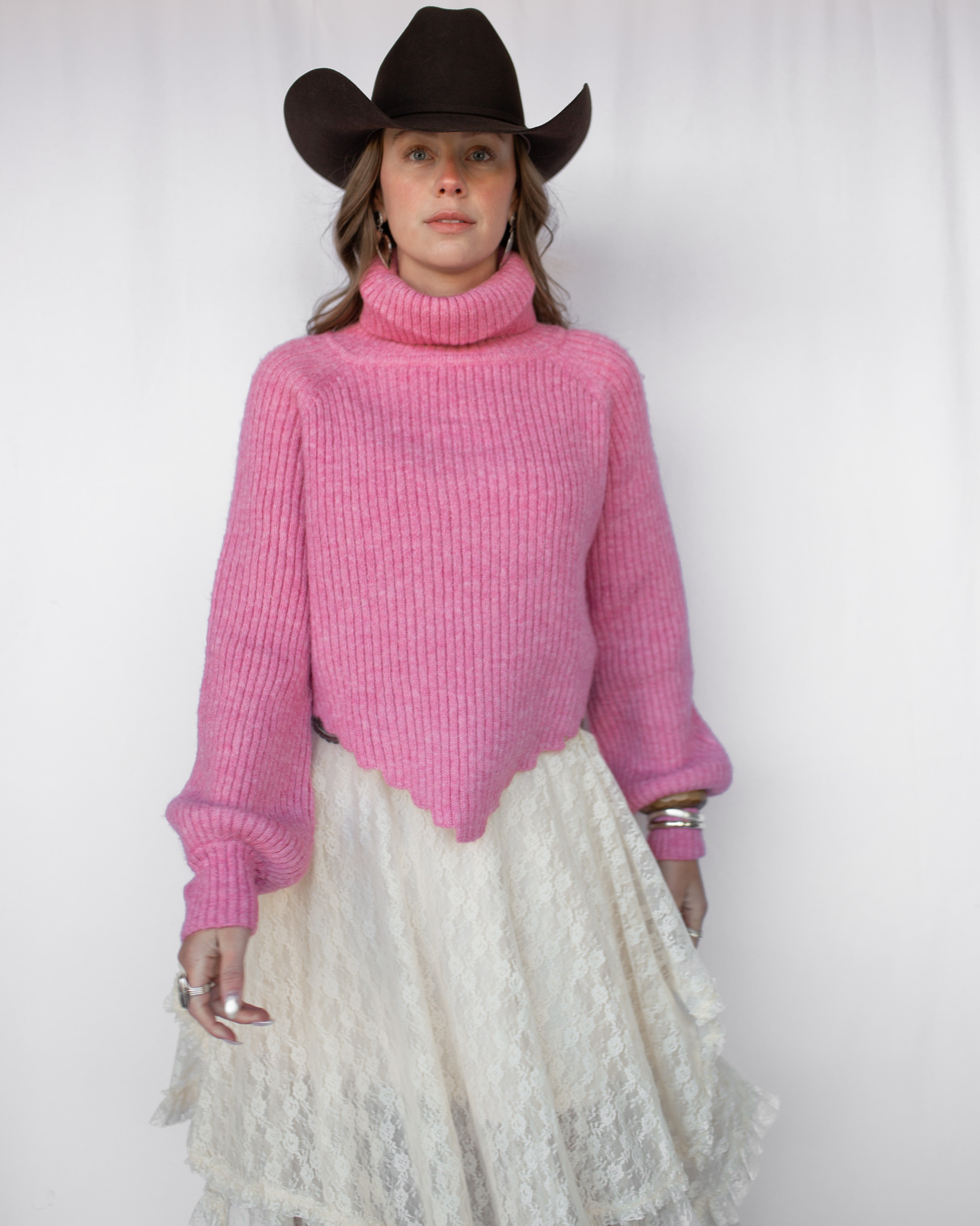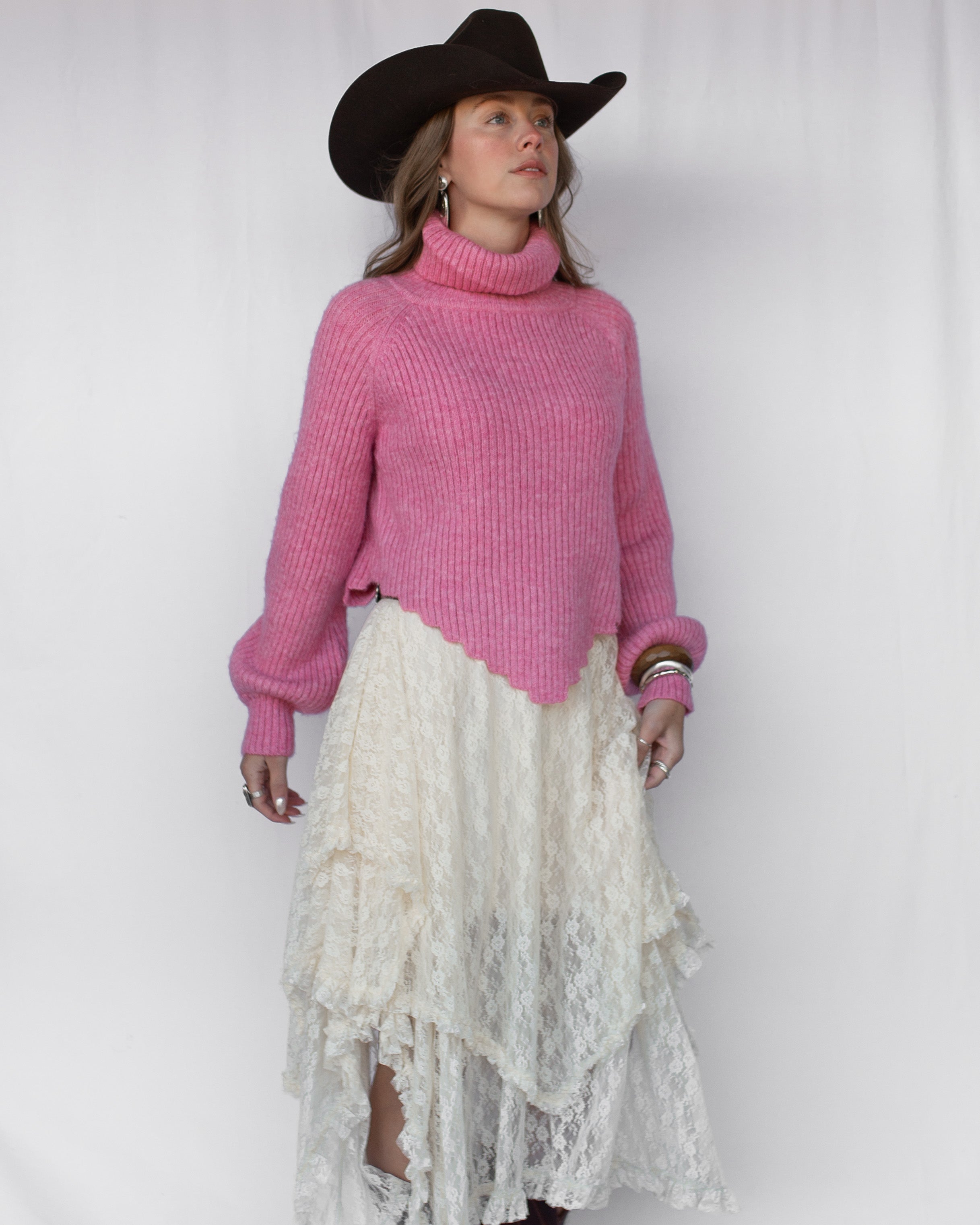 The Bandana Sweater in Blush is the perfect sweater to transition from winter to spring! Style it with our Lilah Lace Skirt or our Sylvie Slip Dress. Two of my favorite looks. - Court