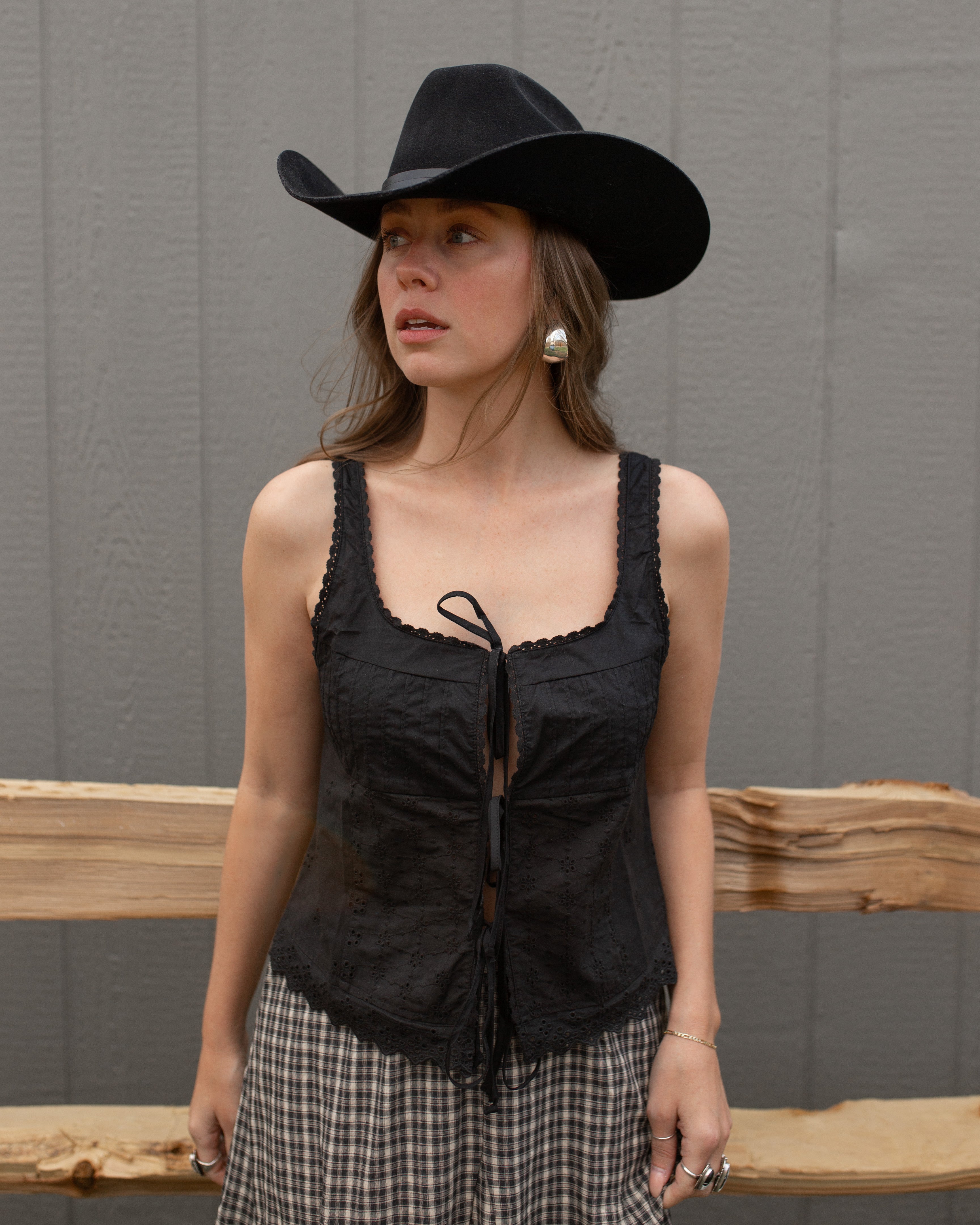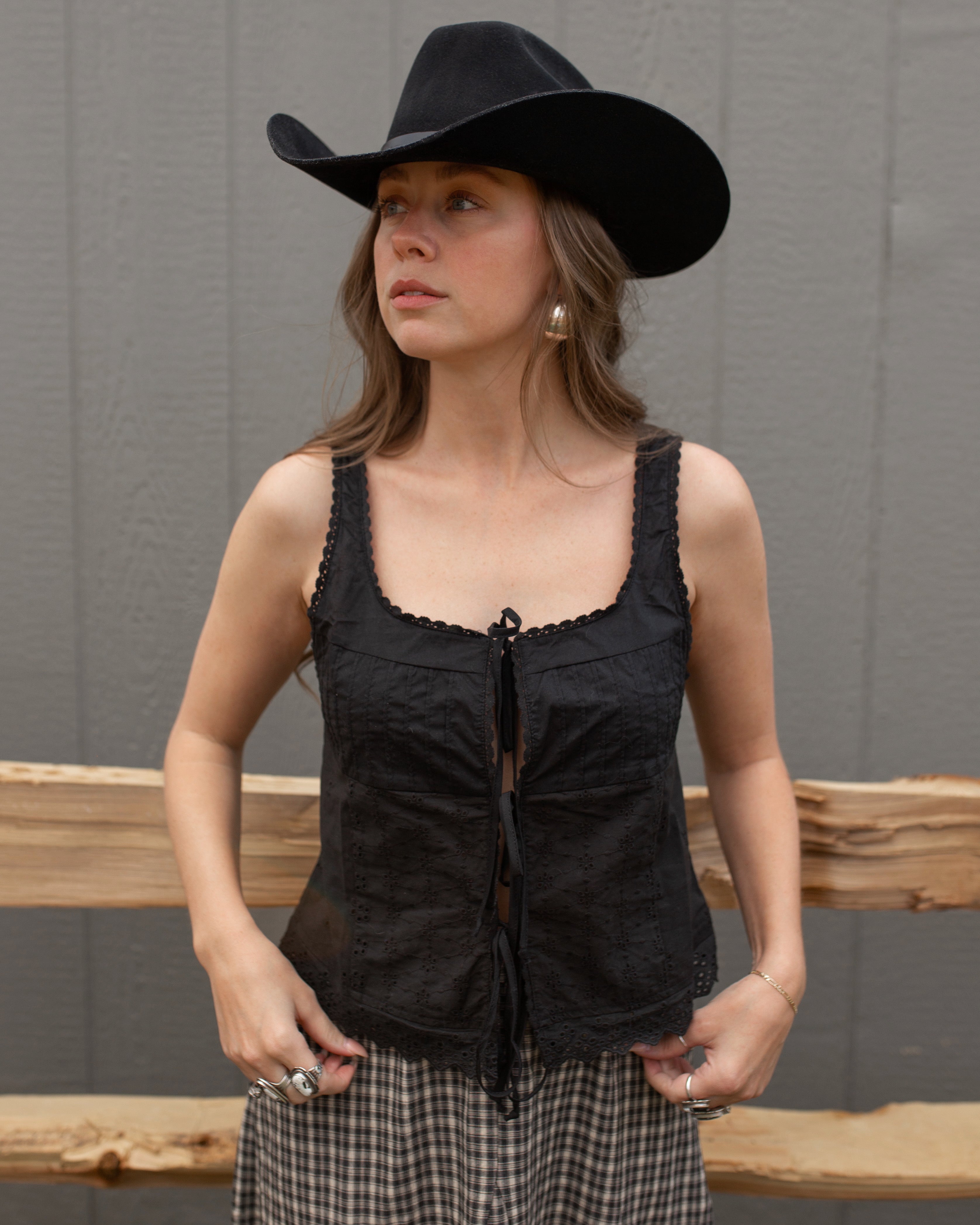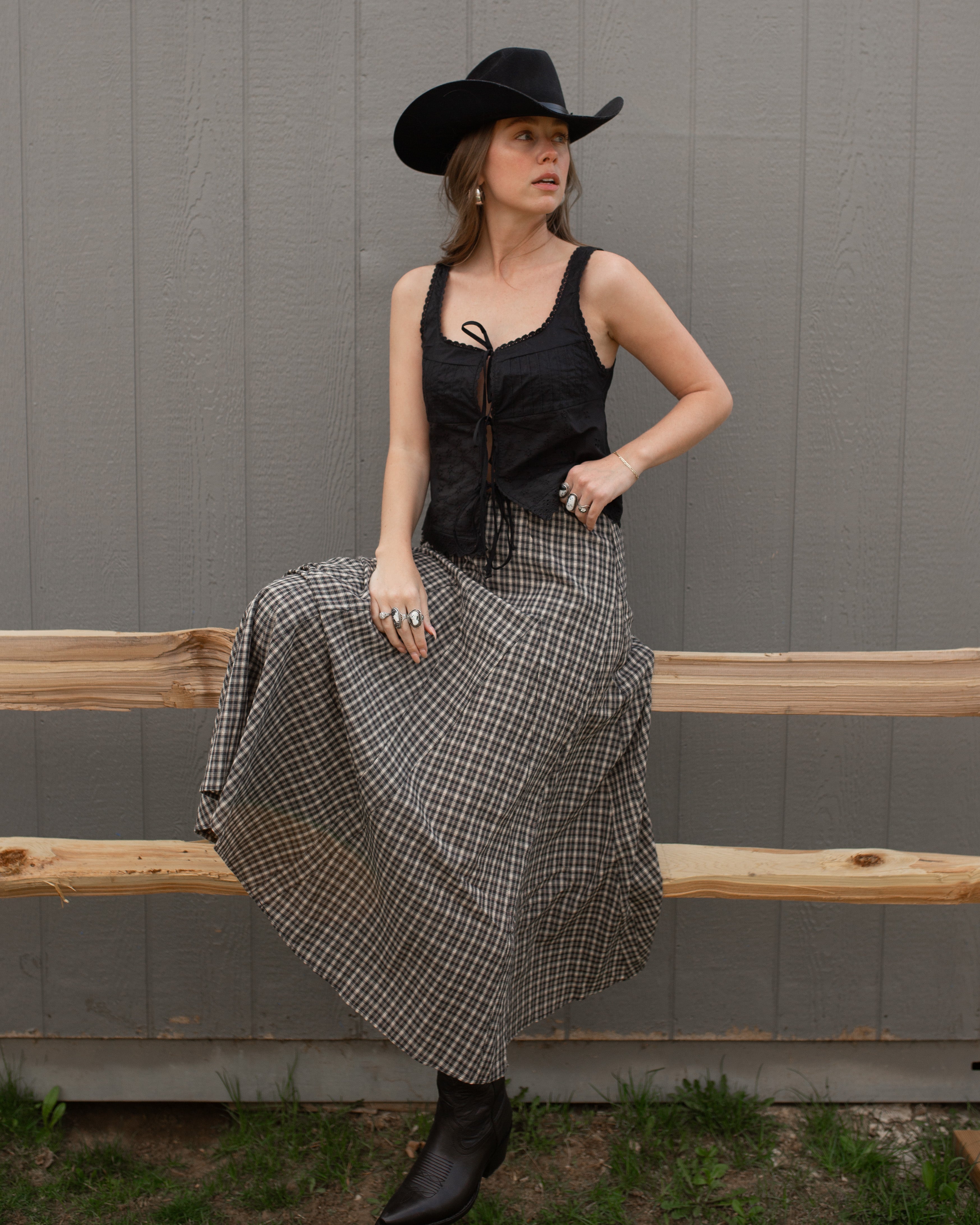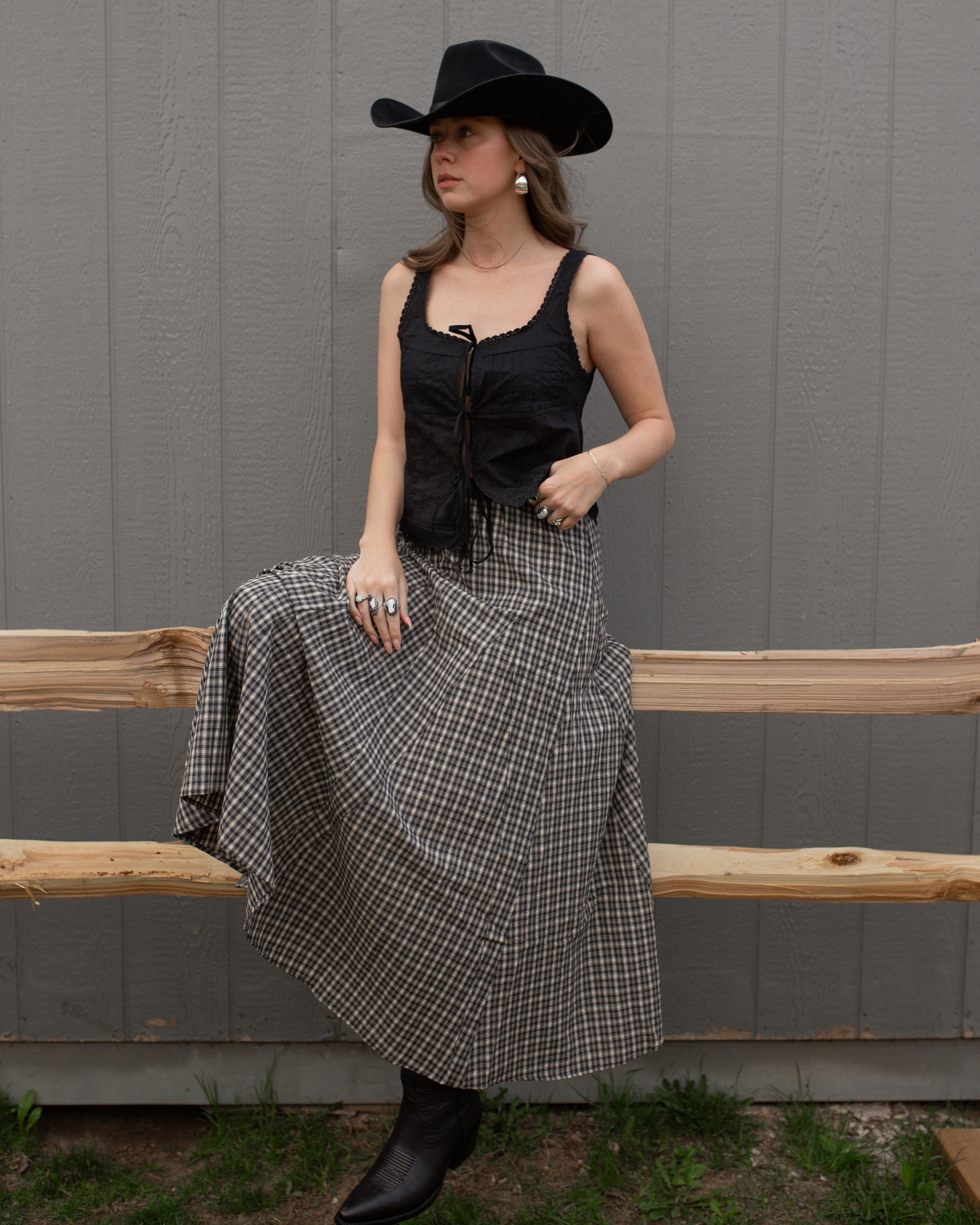 My go-to warm weather top! I style my Maisie Top with our Mae Maxi Skirt and cowboy boots for a classic western look! - Court