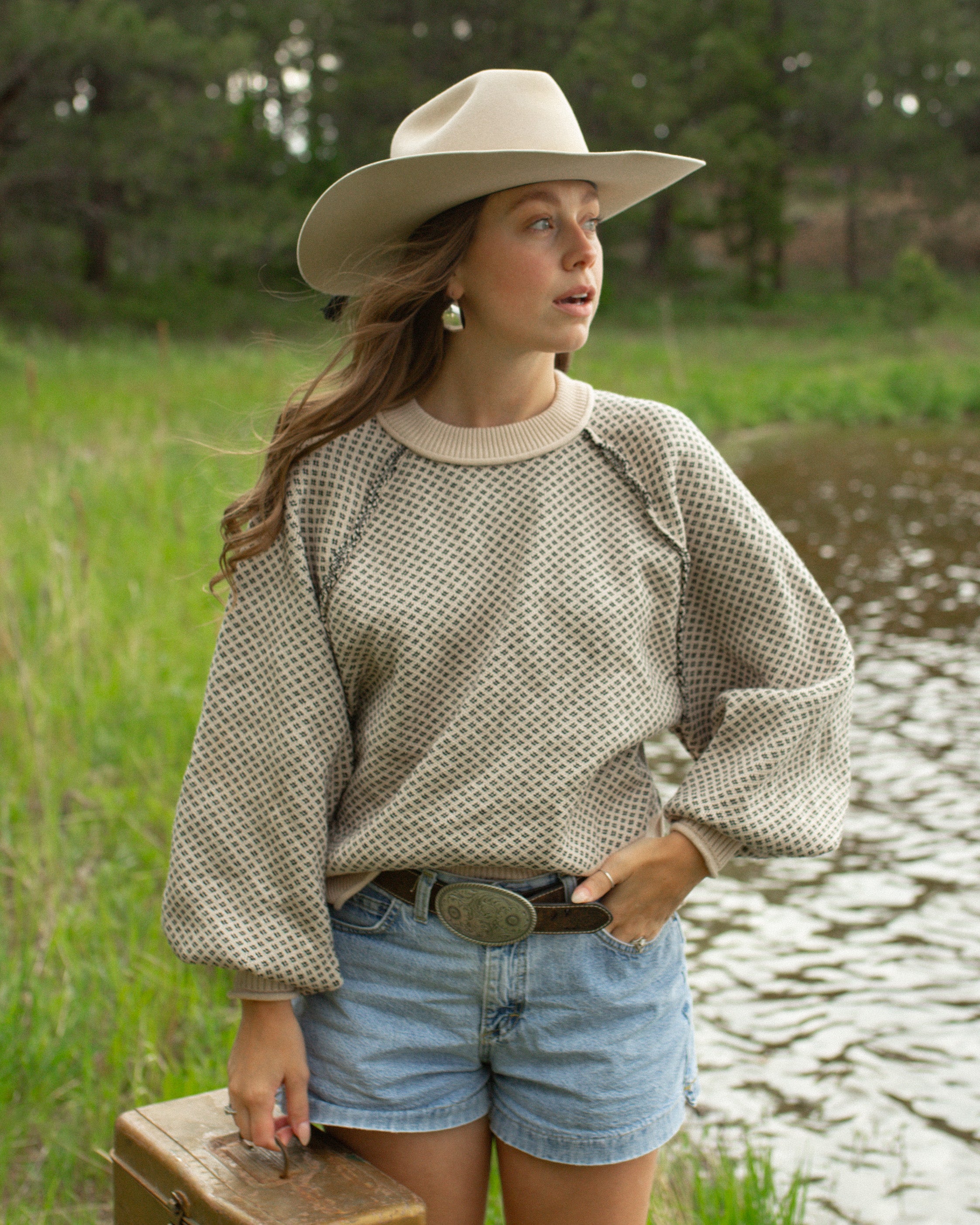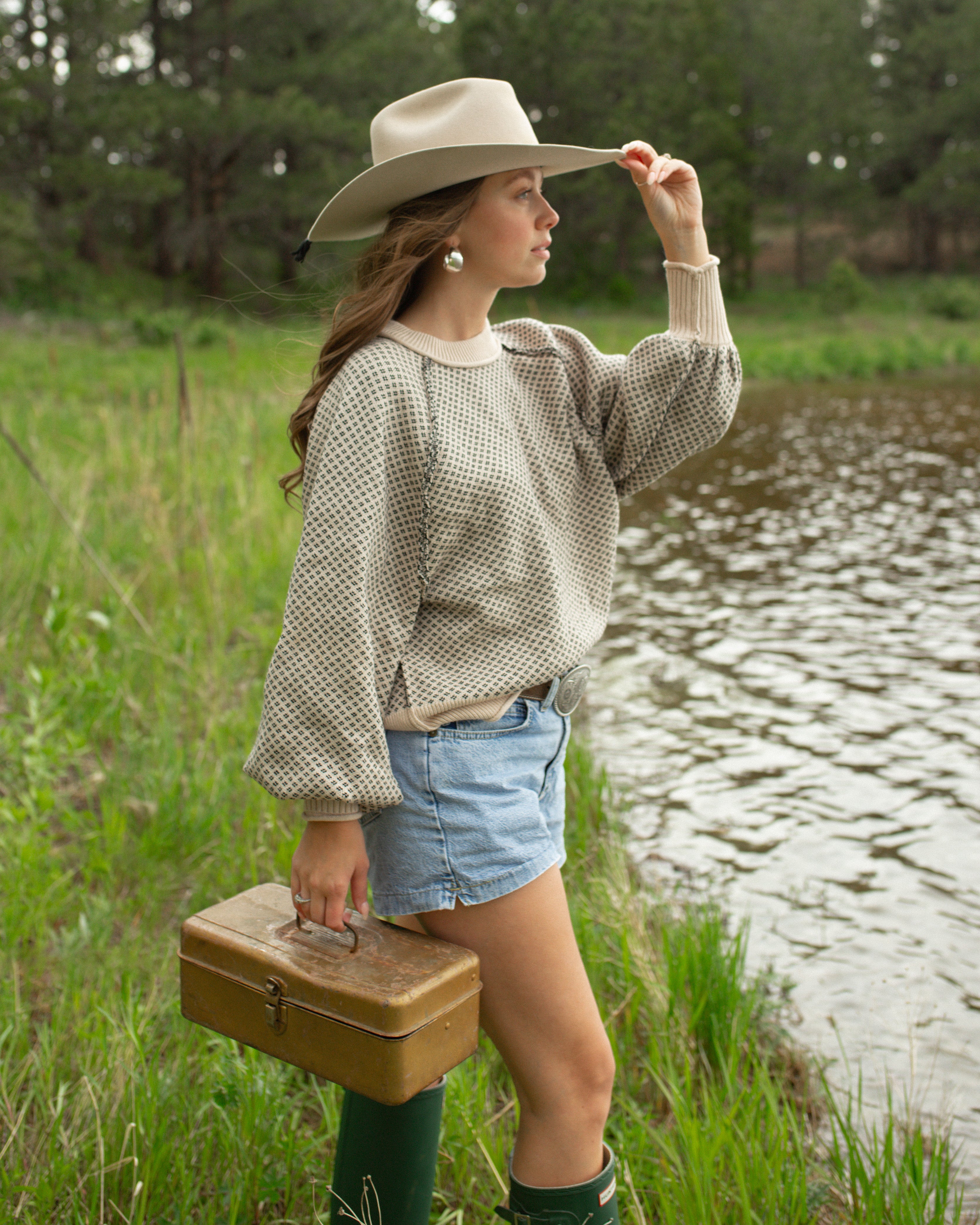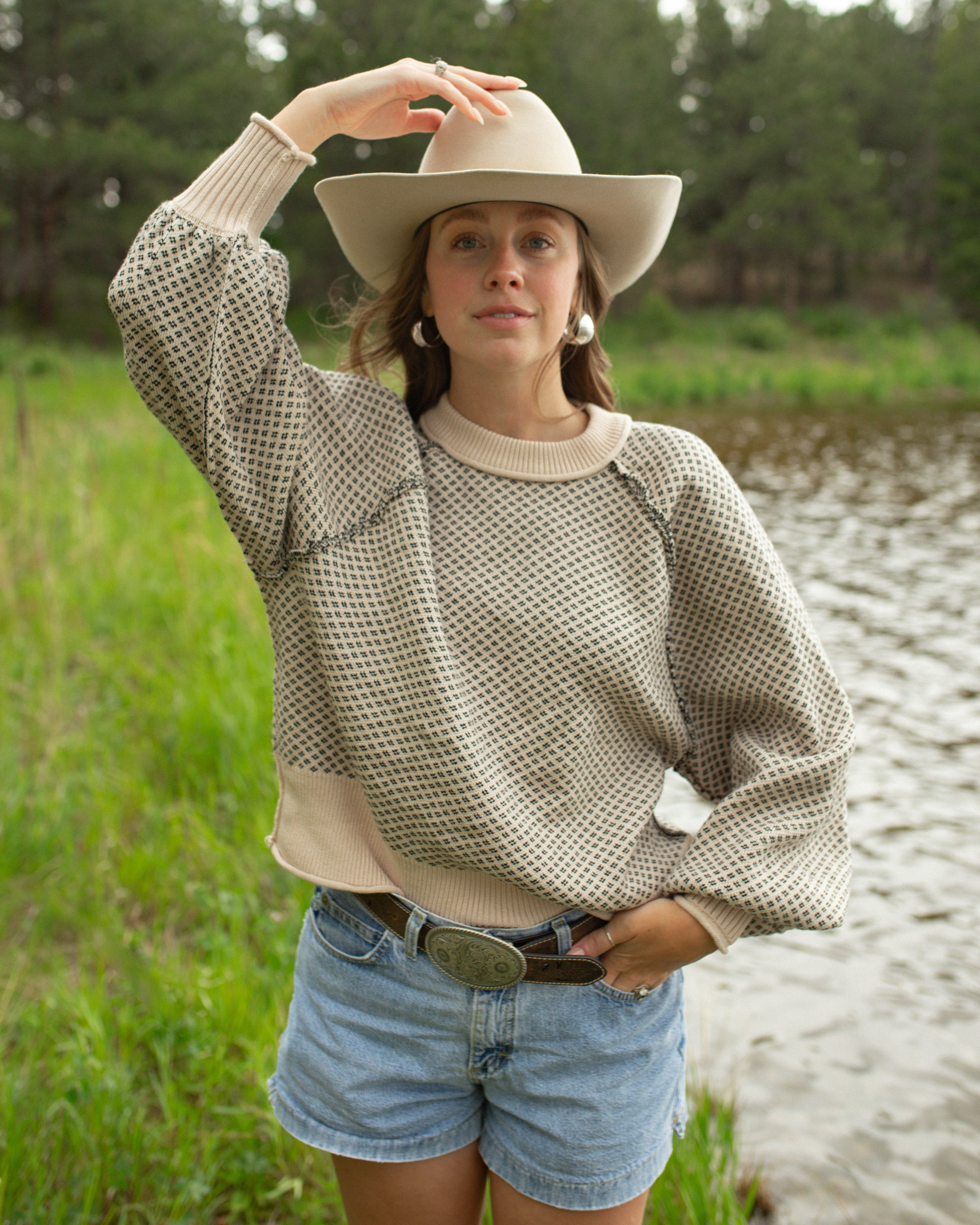 Our Nora Knit Sweater brings a vintage-inspired style that is perfect for the colder weather. I wear mine on all of my winter adventures! - Court