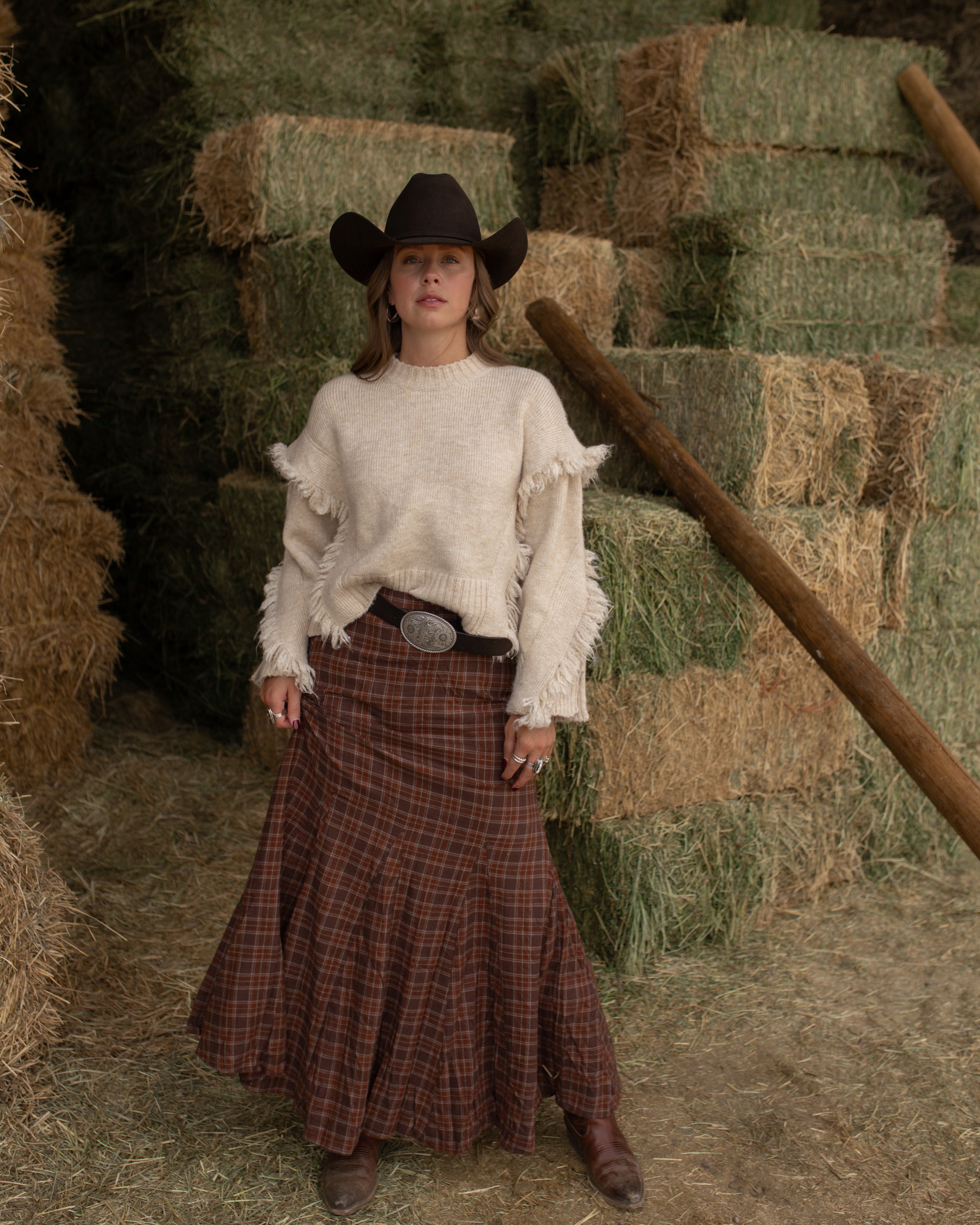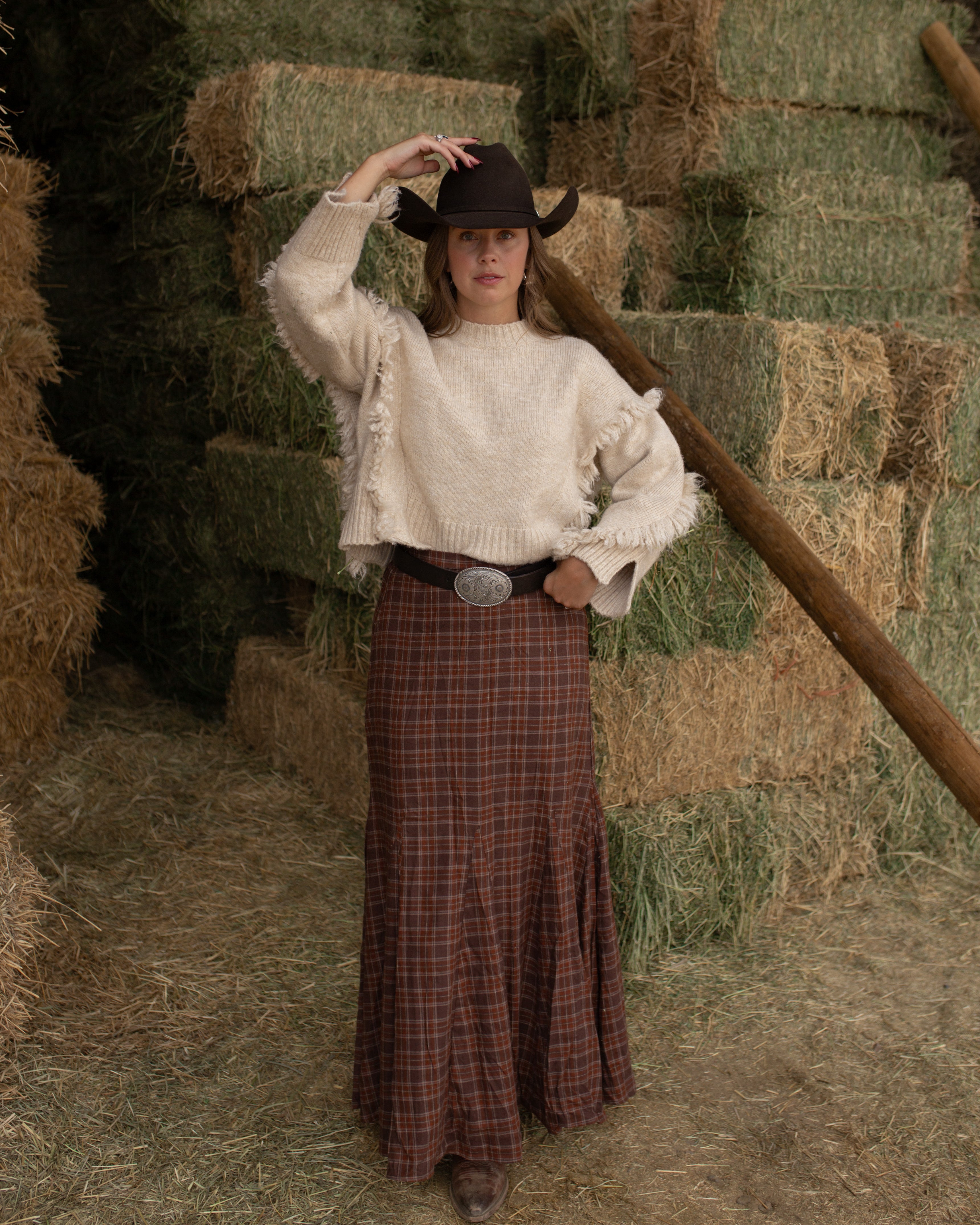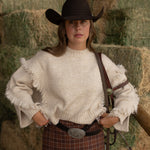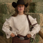 The Opal Fringe Sweater pairs effortlessly with everything. Style it with your favorite pair of denim and cowgirl boots for a fall western look! - Court