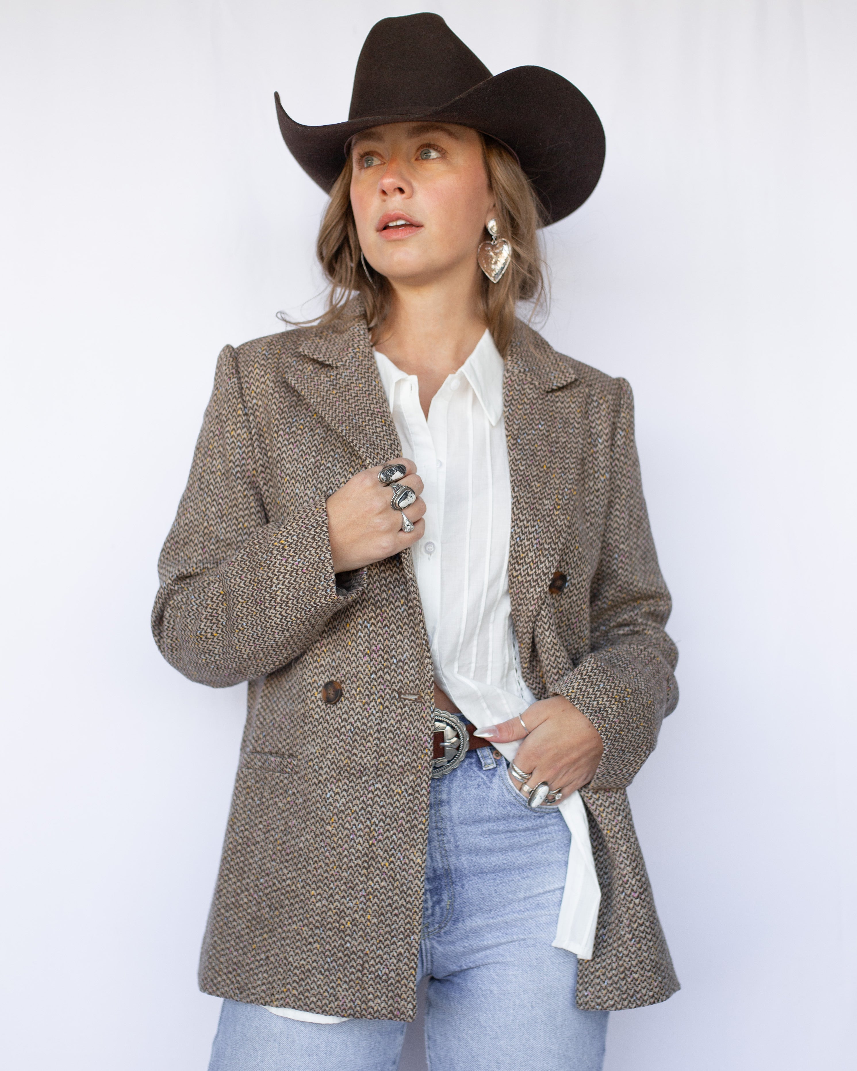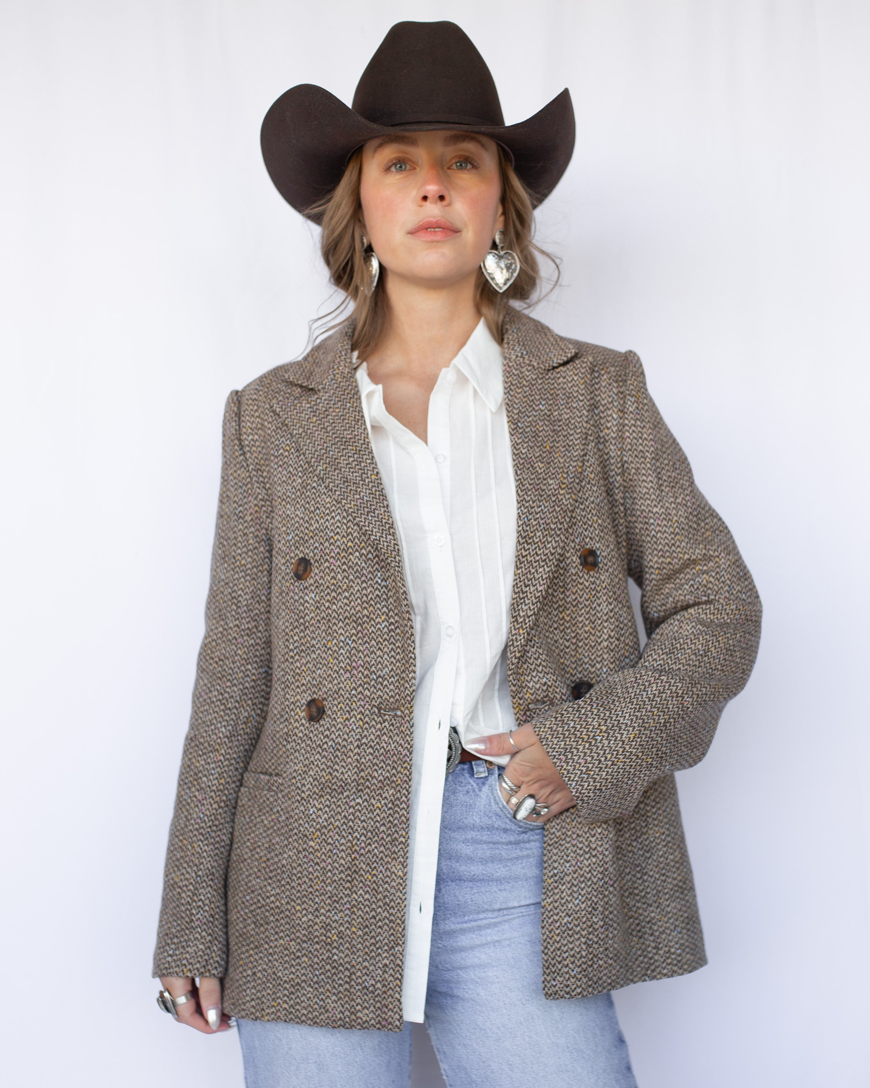 This blazer is the perfect addition to any wardrobe. I style my Bella Blazer with our Willow Blouse, jeans, and cowgirl boots for the perfect western chic look. - Court