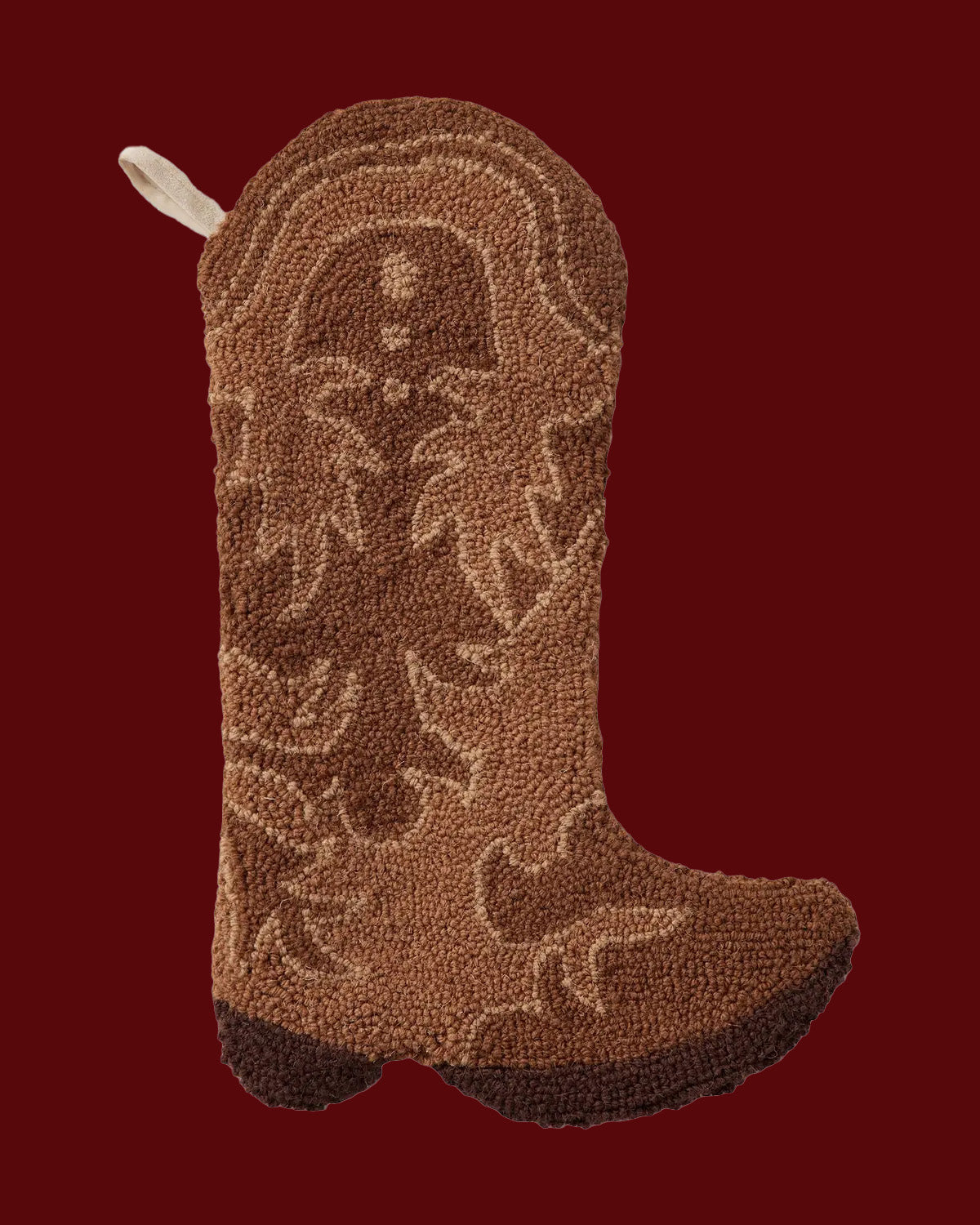 Add a little yee-haw to your holiday decor with this Cowboy Boot Stocking. Hand hooked 100% wool front and 100% cotton velvet back.