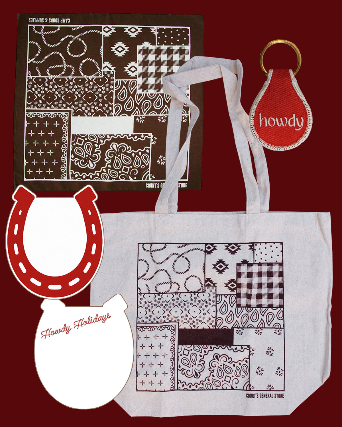 Receive your order wrapped in our Shop Tote, Shop Bandana, Howdy Bag Charm, ribbon, and a custom Holiday Card!
