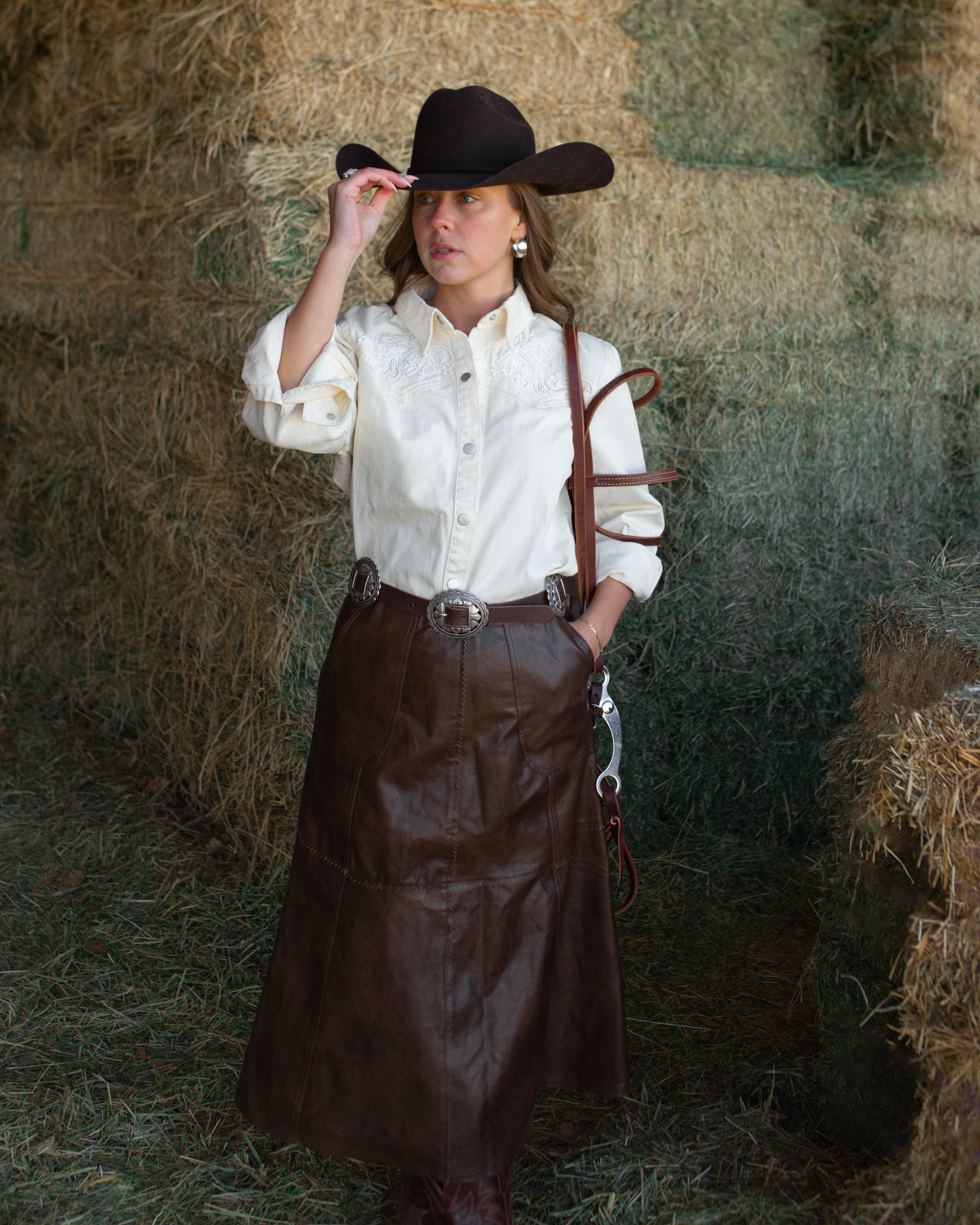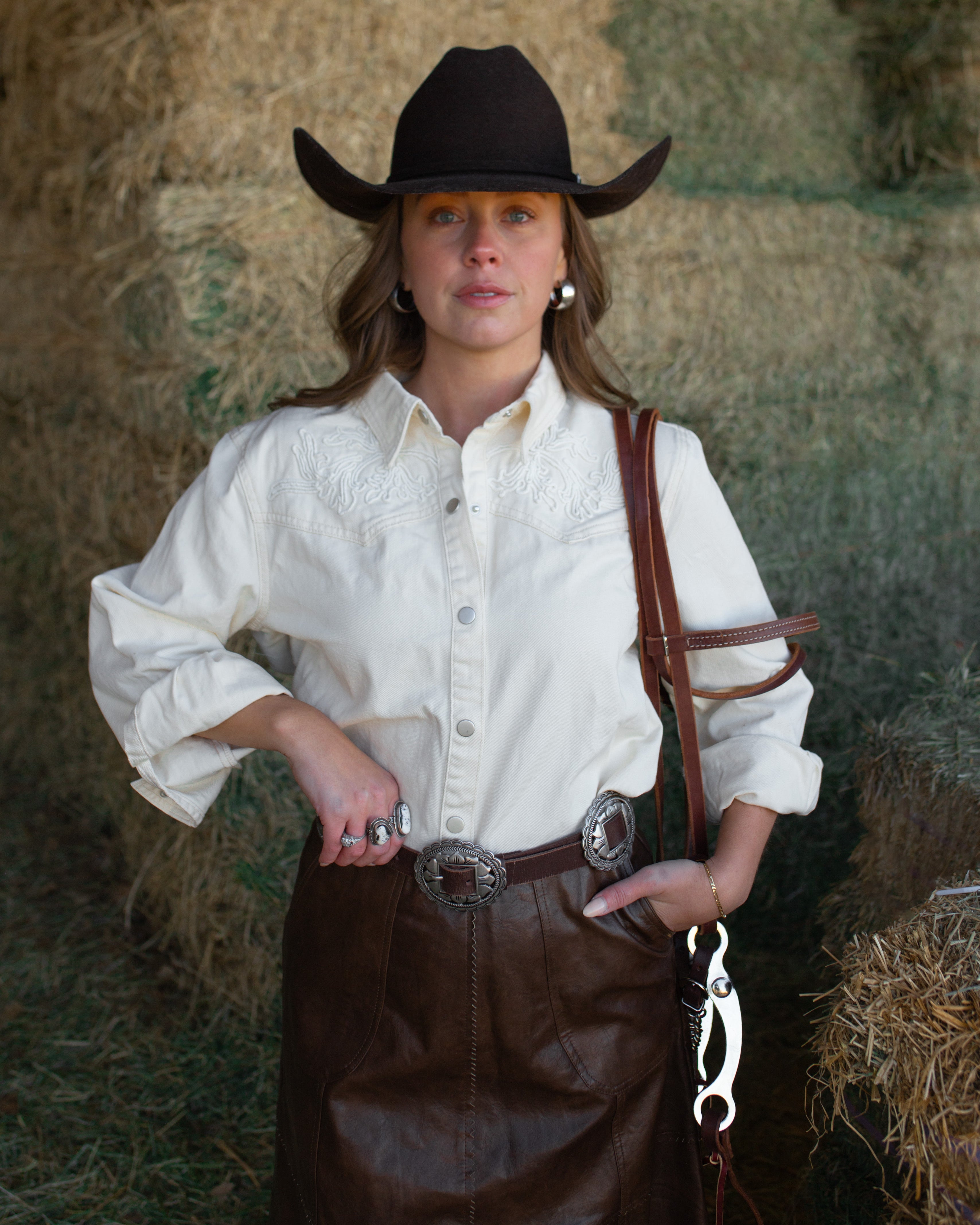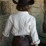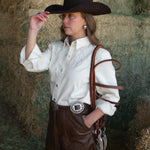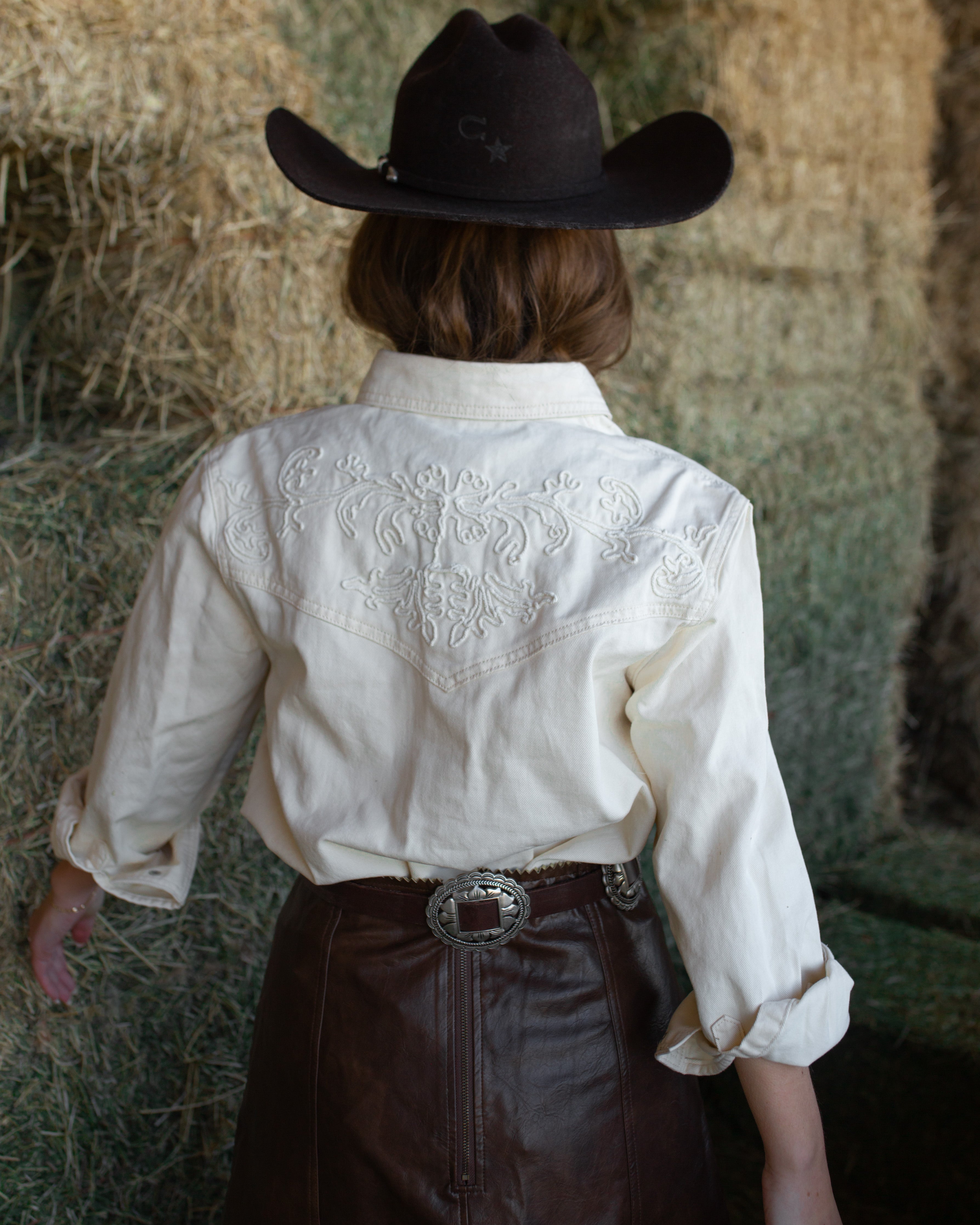 The Everly Shirt is a timeless western classic. This embroidered button-down is one of my most versatile pieces. I style mine year-round with just about everything in my closet. - Court