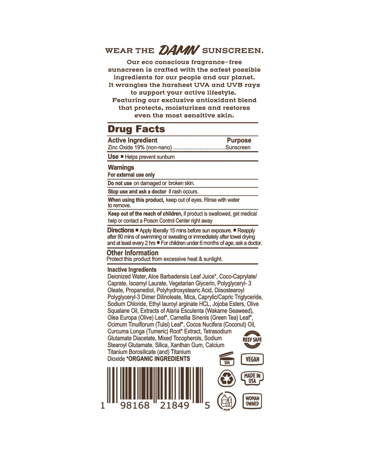 Sun Wrangler Daily Mineral Sunscreen wrangles the harshest UVA and UVB rays. It's crafted with the safest possible ingredients for our people and our planet. Featuring an exclusive antioxidant blend that protects, moisturizes and restores even the most sensitive skin.